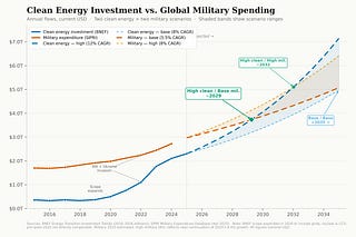 When will clean energy spending exceed military spending?