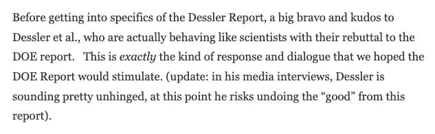 A reporter asked me for a comment on a post on Dr. Judy Curry’s blog about our review of the DOE Climate Working Group report. In her post, she said: