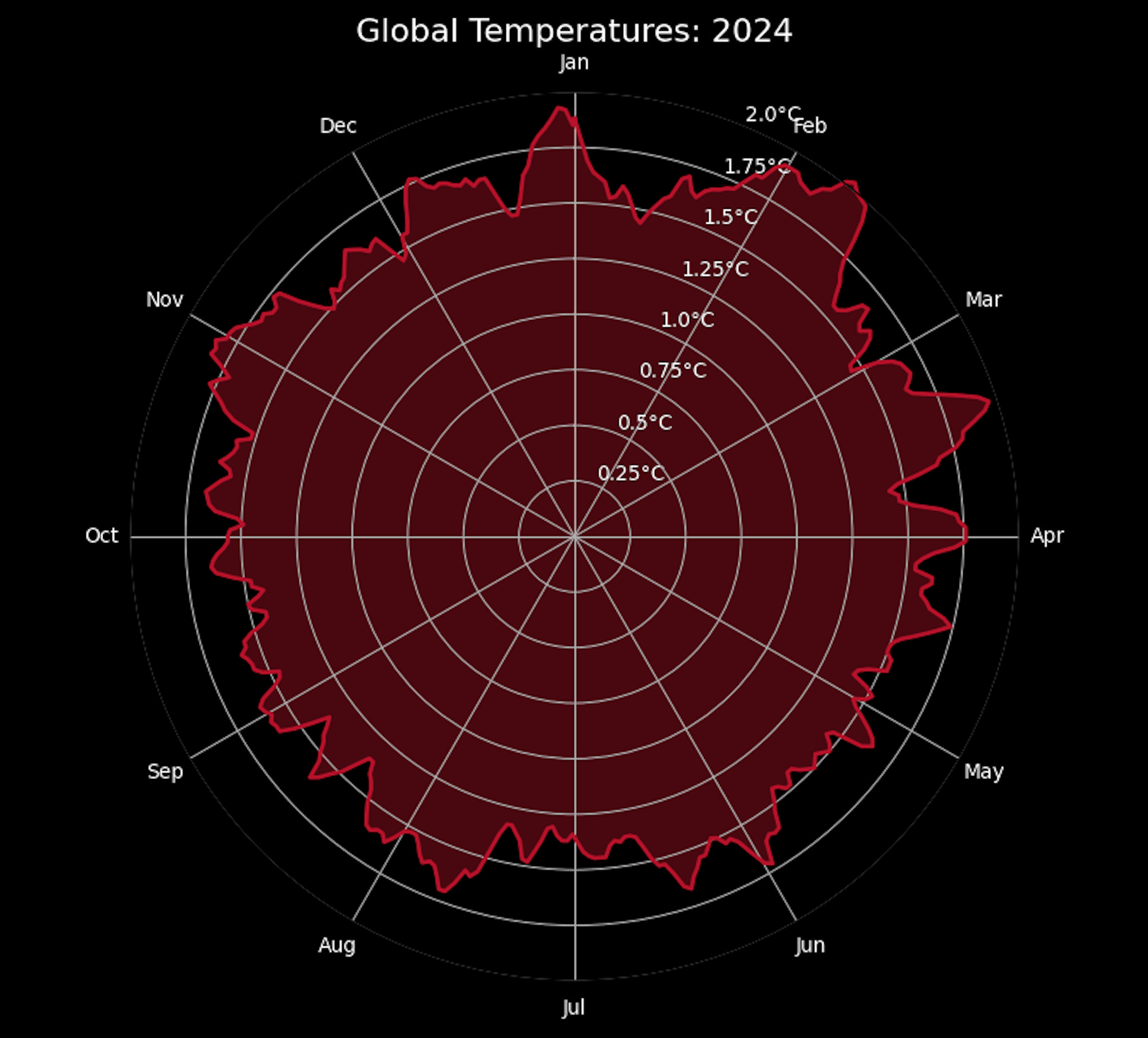 However, I haven’t previously come across any versions of the spiral graph showing daily global temperatures, so I thought it would be fun to create my own (with, I should note, a bit of help from OpenAI’s o3 model to code it).