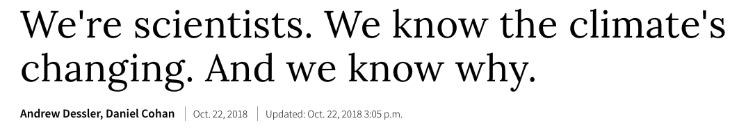 It was reported in the New York Times (gift link) that U.S. Treasury Secretary Scott Bessent recently claimed that scientists don't know why the climate is warming, calling the reasons "difficult to deconstruct" and dismissing climate change as a belief held by the "elite." This is not a new argument. In 2018, when Trump made basically the same claim, the Houston Chronicle asked Dan Cohan and me to write an oped responding to it. It remains one of my favorite opeds, and since the argument clearly hasn't gone away, I thought it was worth reprinting here.